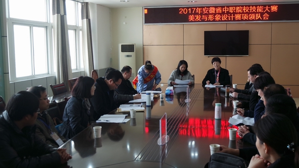 2017全省中职院校技能大赛美发与形象设计赛项即将开赛,为保证大赛顺利进行,3月10日下午在我校十楼会议室召开了领队会议。省教育厅大赛委员会领导、各参赛院校领队出席会议,我校宋晓宾副校长、纪委包太平书记、教务处处长史毓勇、公共服务系主任常伟伟等参加了会议。