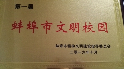 2016年,我校积极参加蚌埠市第一届文明校园创建工作,学校领导班子高度重视,结合创建全国文明城市活动,广泛开展创建工作,措施扎实,氛围浓厚,成效明显,学校各方面工作都取得骄人成绩。