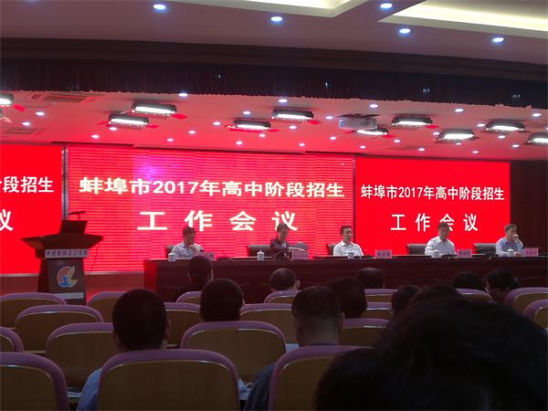 2017年5月11日上午,蚌埠市高中阶段招生工作会议在蚌埠新城实验学校召开。来自全市各普通中学及职业学校的领导参加了会议,我校陈元高校长出席会议并上台领奖。