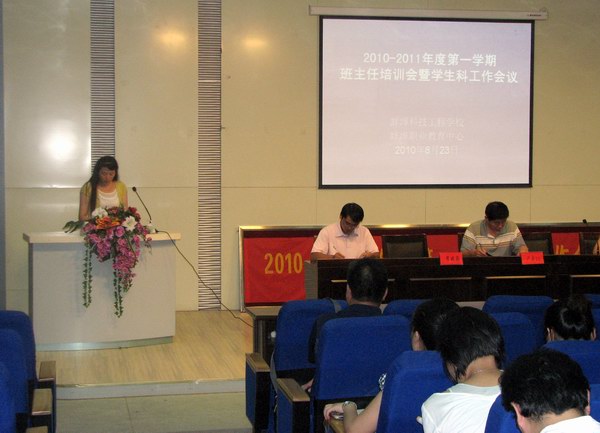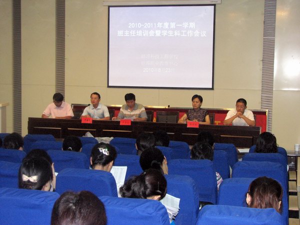 会上首先由宋晓宾校长对学校前一阶段的学生科和班主任工作做了客观务实的点评与总结;之后三位优秀班主任黄梅、薛明、王君分别做了班主任经验交流;学生科谢铭科长布置了新学期学生科的各项工作;最后张玉琳校长对新学期的学生科工作和与会的班主任提出了重点要求,并勉励班主任要不断提高个人的文化、道德修养,增强工作的艺术性和情感性,做一个让学生喜爱、亲近,尊敬有加的班主任。(学生科)