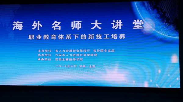 6月10日-11日,省人社厅、省外国专家局主办了“海外名师大讲堂—职业教育体系下的新技工培养”专题讲座,全省各市分管职业能力建设工作的领导及技工院校和部分职业院校的负责同志200余人参加了讲座,分享了新加坡名师对新加坡职业教育办学特色和教学管理模式的介绍。专题讲座由金寨技师学院承办,我校陈元高校长等参加了讲座。