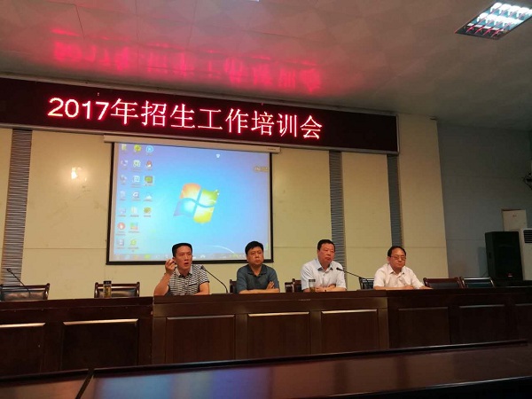 为进一步做好2017年暑期招生工作,我校于2017年6月21日召开了2017年招生工作培训会,陈元高校长、郝登峰书记、陈劲松副校长、全体中层干部及参与招生的教职工参加了培训会。
