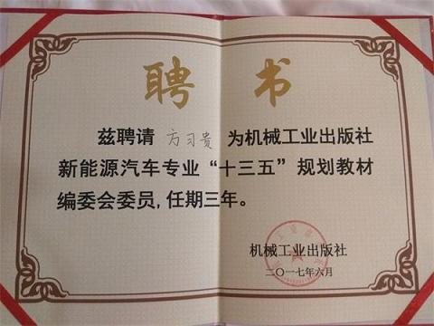 2017年6月18日-6月19日,新能源汽车专业教材与配套资源研讨会在深圳金茂园大酒店召开,我校机电工程系汽车教研组方习贵老师受邀参会,并受聘机械工业出版社新能源汽车专业“十三五”规划教材编委会委员,这也是参会代表中唯一一所中职学校教师受聘。
