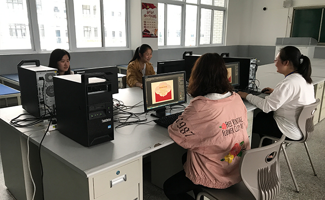 由于搬到新校区,机房没有到位,为了不耽误备战,我系从老校搬了四台电脑,在实训南楼310,临时搭建了实训场地。她们不怕苦,不怕累,克服重重困难,每天在实训室里刻苦训练,从平面广告到书籍装帧设计,各项内容都精心准备,努力在省赛中取得好成绩。(电子信息工程系 王颖)