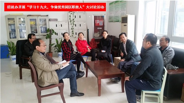 招就办帅恒松主任首先带领大家学习了习总书记在十九大上的报告,深入领会报告中“8个明确,14个坚持”的深刻内涵。宋同延主任等同志畅谈了收看十九大开闭幕式的心得体会,对“学习十九大,争做优秀园区职教人”活动献言献策,大家纷纷表示,一定要认真学习和领会习总书记的报告,结合工作实际,把报告精神贯彻落实到本职工作中去,争做优秀园区职教人,为职教园区的繁荣发展做出自己应有的贡献。(招就办供稿)