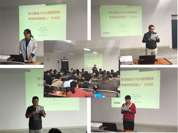 周三下午两节课后,电子信息工程系、机电系以及医护系三系联合开展“学习十九大,争做优秀职教人”大讨论活动。