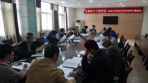 为加快推进中等职业教育质量提升工程项目建设,迎接6月底开始的市级、省级中期评估,5月8日,我校召开了质量提升工程项目—省级示范特色学校项目建设研讨推进会。会议总结了项目建设的进展、成效以及存在的问题和改进措施,布置了自查自评工作。会议由学校质量提升工程项目建设领导小组副组长、办公室主任宋晓宾副校长主持,各子项目负责人和相关处室负责人参加了会议。