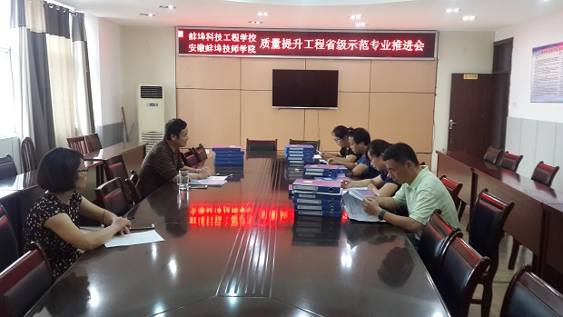 为贯彻省教育厅对省级质量提升计划项目建设与管理的要求,督促并指导安徽蚌埠技师学院 蚌埠科技工程学校省级示范专业的建设和研究工作,切实提高项目质量,2017年7月7日上午9:30分,在学校综合楼十楼会议室,我校召开了质量提升工程省级示范专业推进会。受学校领导委托,机电工程系主任焦其彬主持此次会议,参加会议的分别为机电技术应用(工业机器人应用与维护方向)省级示范专业、计算机网络省级示范专业、数控技术应用省级示范专业、护理省级示范专业建设项目组的正副组长及部分组员。