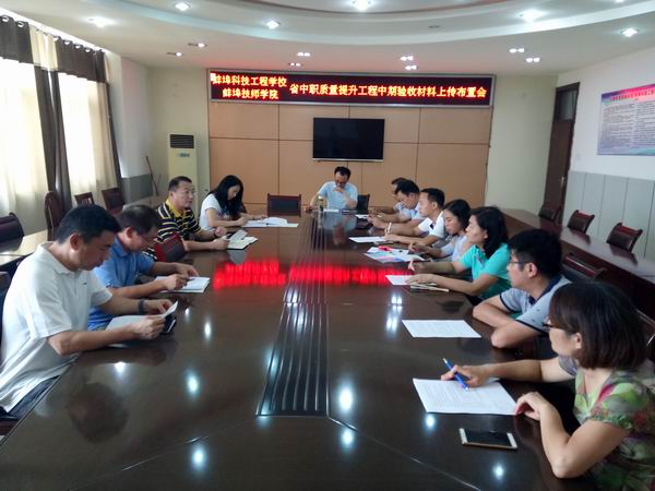 虽然已经是暑假,又遇上40度的高温天气,我校省中职质量提升工程的相关工作仍在继续,校园里处处闪现着老师的身影,2017年7月28日上午,在综合楼十楼会议室又召开了省中职质量提升工程中期验收材料上传布置会,各项目主要负责人参会。