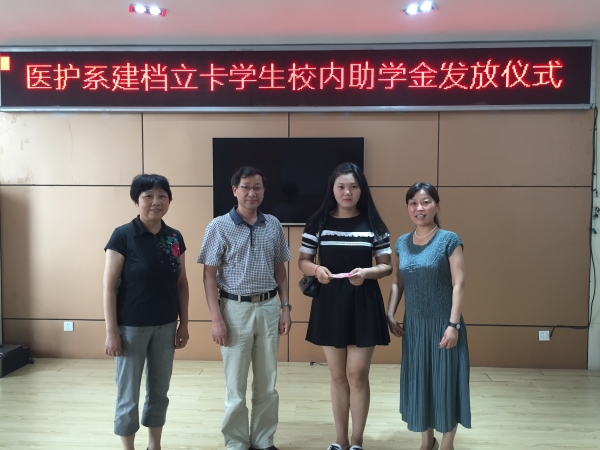 为贯彻落实国家扶贫工作会议精神,做好医护系建档立卡学生资助工作,6月15日,医护系举行建档立卡学生校内助学金发放仪式,包太平书记为受助学生发放资助金。