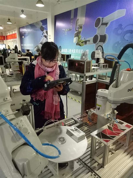 2017年12月13日, 由安徽蓝柏教育科技有限公司与安徽六安技师学院校企合作举办的全国“工业机器人应用工程师”安徽省第一期师资培训班在安徽六安技师学院实训楼隆重开班,我校机电工程系青年教师项西艳参加了此次培训。