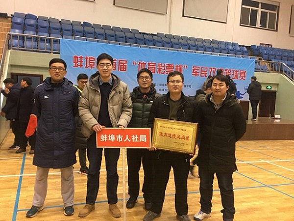 学校篮球队尽管仓促组队,缺乏集训,但队员们奋力拼搏,愈战愈勇,不畏艰难,力克强队,获得地方队第三名,为蚌埠市人力资源和社会保障局赢得“体育道德风尚奖”,获得局领导的好评。