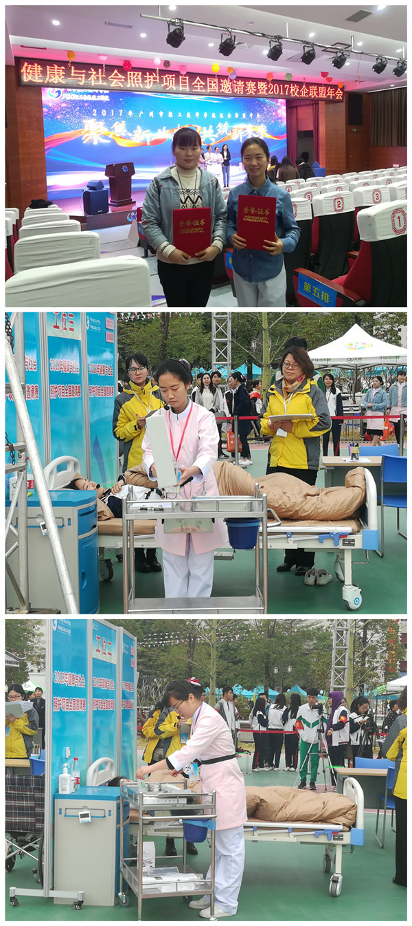 2018年1月5号,健康与社会照护项目全国邀请赛在广州市轻工技师学院举行。全国有9个省份8家院校12家企业参加了此次大赛。我校医护系教师化晨晨、陆文君在崔海琼主任的领队下参加了此次大赛。