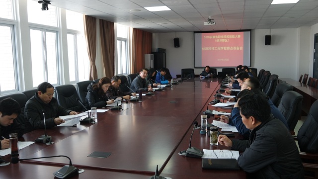 2018年安徽省职业院校技能大赛(中职组)职业英语(服务类、其他类)、焊接技术赛项比赛即将在我校举行。为保证大赛顺利进行,2018年3月1日上午9:00,学校召开赛点工作准备会,全体工作人员参加了会议,会议由教务处副主任苏玉杰主持。