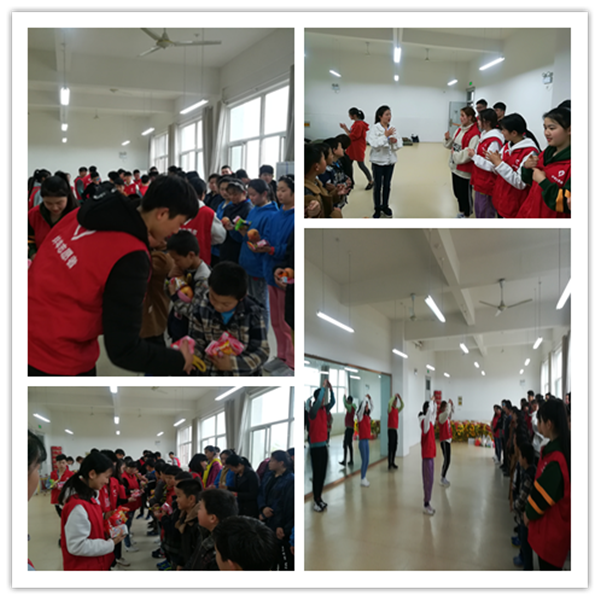 19日下午三点整,志愿者们徒步来到了特教中心舞蹈训练室,特教中心的学生们早已列队等待着我们的到来,并用手语和我们打招呼。特教中心的宋老师用手语向学生们简单介绍了我们的来访后,我校学前教育专业的5名志愿者为学生们表演了幼儿舞蹈“小苹果”。之后,志愿者们为他们分发我们带来的零食、牛奶和水果。我们用最简单、最质朴的方式,传递着我们的温暖。宋老师还同孩子们教们学习手语和我们用手语对话。在那些孩子中,虽然他们都存在着这样那样的缺陷,让我们没有办法和他们进行语言交流,但是他们乐观、纯真、热情,和我们的志愿者们用肢体用手语进行心灵的交流。让我们都真切地感受到他们对于这个美妙世界的好奇。活动从头至尾,整个屋子里都充斥着笑声,洋溢着温暖的气息。
