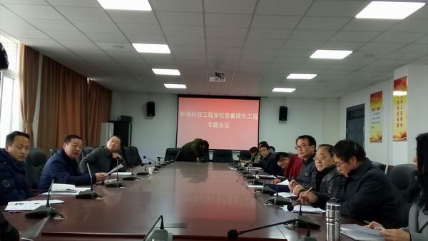 今天下午蚌埠科技工程学校召开中期质量提升工程暨人才培养状态数据分工会,会议由教科研处方选斌处长主持,参加会议的有各科室、各系部及各项目负责人,陈元高校长和宋晓宾副校长参加会议,并作重要指示。