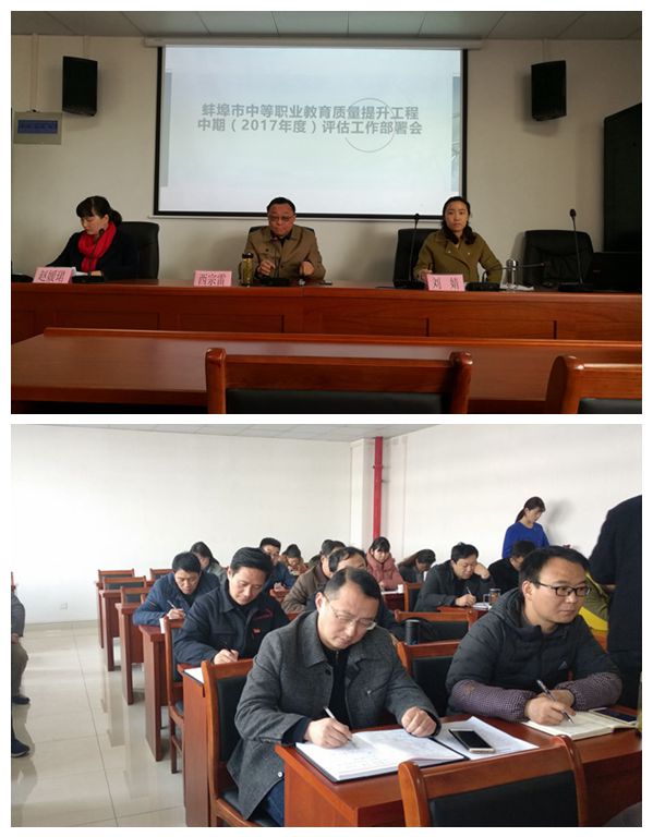 蚌埠市中等职业教育质量提升工程2017年度中期评估工作部署会于3月22日上午在蚌埠工艺美术学校会议室举行。我校宋晓宾副校长及质量提升工程各项目负责人参会。会议由市教育局职成科西宗雷科长主持。