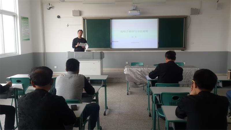 2018年4月11日下午3:45分,安徽蚌埠技师学院 蚌埠科技工程学校机电工程系在校实训北楼205室举办教师教学及过程评价工作手册使用培训会,此次培训会由机电工程系主任焦其彬主持,副主任高龙任培训主讲,系全体教师参加了会议。
