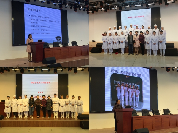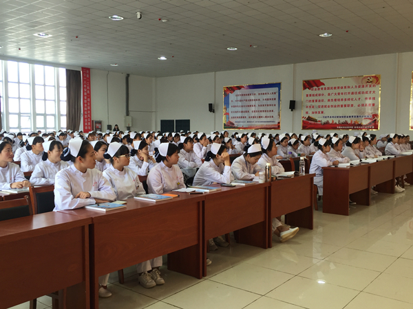 4月24日,我校医护系召开16级护理、医学检验技术专业岗前培训会,大会邀请了蚌埠市第一人民医院护理部副主任护师张娟老师和蚌埠医学院第二附属医院主管护师、急内科护士长陈玲玲老师为16级学生进行培训。