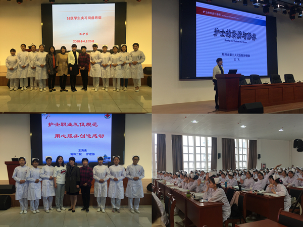王飞老师用《护士的素质与修养》为课题,针对护士必备的各方面能力展开讲解;王海燕老师培训的课题是《护士职业礼仪规范,用心服务创造感动》,就护生应掌握的护理礼仪和沟通技巧展开详细的介绍,让在场的护生们收获颇丰。(供稿:王雪粟;审核:王玮)