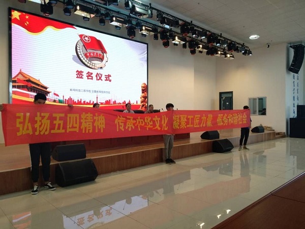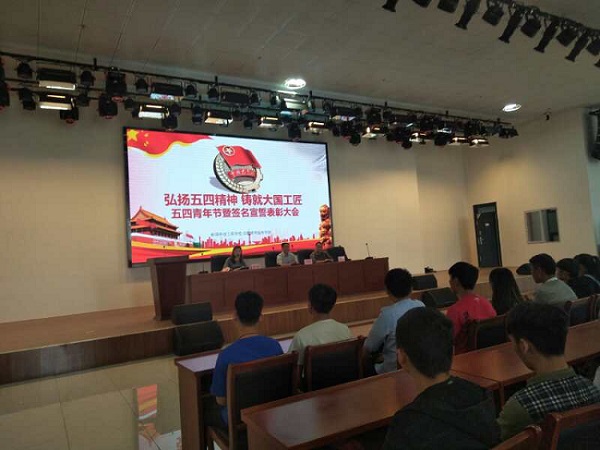 本次大会在庄严的国歌声中开幕。首先举行了五四青年节宣誓及签名仪式,本次签字宣誓仪式大会以“弘扬五四精神,传承中华文化,铸就大国工匠,服务和谐社会不朽的青春”为主题,宣扬五四爱国精神。在会上同学们通过签名、宣誓的方式表示要把五四精神传承下去。接下来,随后,对我校优秀学生干部、优秀学生会干事、优秀班干部共59名学生进行了隆重表彰。同时对在校园文化活动中表现突出的班级进行颁奖。最后,陈劲松副校长对同学们提出了殷切的希望,他号召同学们要弘扬五四爱国精神,努力学习,展现青春风采。历史赋予我们的使命是有增无减的,我们更应该珍惜现在,展望未来。他强调被表彰的优秀学生要起到先锋模范作用,要弘扬爱国、爱校、爱家,奉献爱心的“三爱一奉献”精神,要求我们同学们更加义不容辞地去实践。