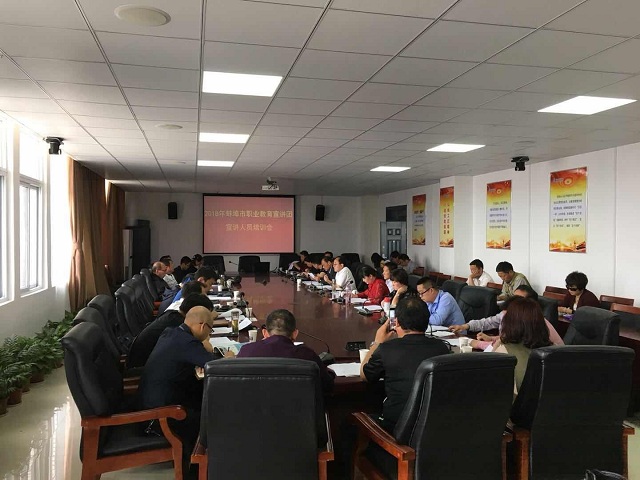 为贯彻落实蚌埠市教育局关于职业教育工作的指示精神,切实做好2018年蚌埠职业学校招生工作,5月9日下午,市教育局职成科在我校召开了“2018年蚌埠职业教育宣讲团宣讲人员培训会”。市教育局职成科赵媛珺老师、我校招生分管校长陈劲松同志、蚌埠市各中职学校招办主任及宣讲人员40余人参加培训会。