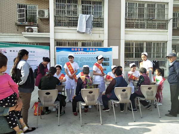5月10日下午两节课后,校团委联合医护系在梨花园小区开展了职业教育进社区便民服务活动,为社区居民免费量血压并带来了家庭医疗保健和老年护理等项目内容,我校护理专业派出老师和学生近二十人参与此次活动。