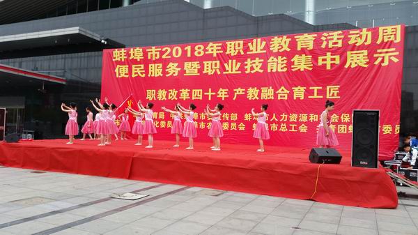 5月6日—12日,为2018年全国职业教育活动周。5月7日,市教育局、人社局等七部门,在淮河文化广场会展中心南广场举办职业教育活动周便民服务暨职业技能集中展示活动启动仪式,我校组织了各个系部和相关部门近百名师生参加了活动。