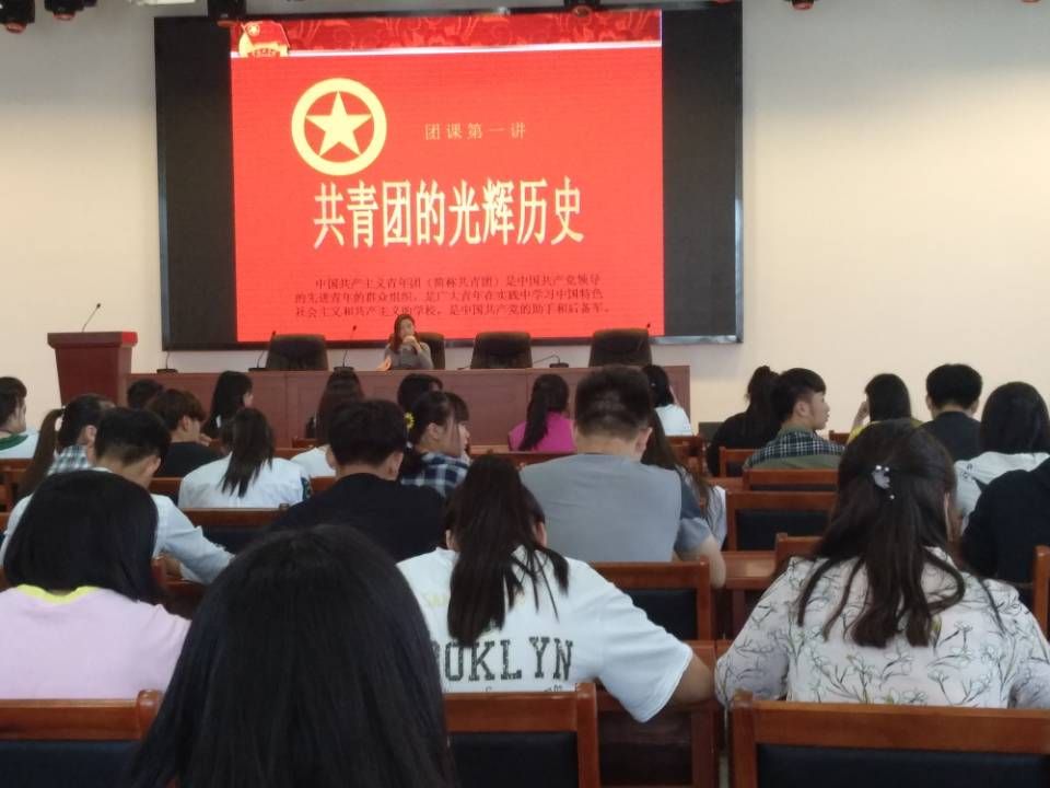 2018年5月14日,13:00,在二楼多功能报告厅,校团委李雯老师对我校新入团的团员进行“共青团的光辉历史”团课培训,178名入团积极分子参加此次团课。