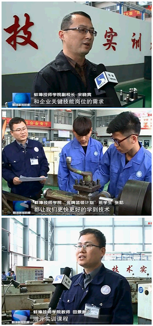 2018年5月15日蚌埠电视台蚌埠新闻联播栏目报道了安徽蚌埠技师学院“金牌蓝领计划”启动及实施情况。