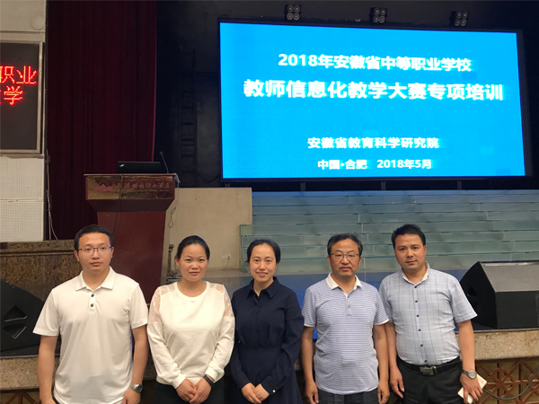 5月19日,2018年全省中等职业学校信息化教学大赛专项培训在合肥举行,本次培训由安徽省教育科学研究院主办,邀请了国赛评委陈振源教授、安徽省教育科学研究院肖丙生科长、国赛一等奖选手江新华老师和周梅老师一同参会。我校《基于互联网+的信息技术与课堂教学深度融合实施策略研究》课题组成员参加了此次培训。
