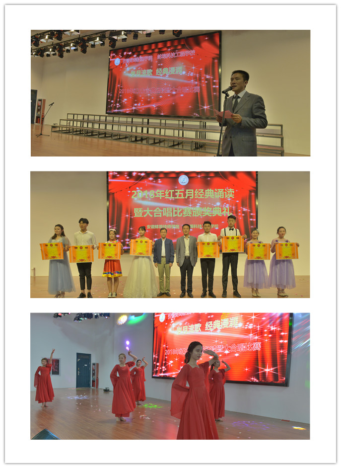 熟悉的旋律,演绎时代的乐章;飞扬的歌声,吟唱难忘的岁月。为了弘扬中华民族精神,唤起学生的红色记忆,培养爱国情感,传承中华文化之博大精深,引领学生健康成长,创建文明和谐校园。2018年5月25日上午8:30分,蚌埠科技工程学校“岁月流歌 经典浸润”红五月经典诵读暨大合唱比赛在校报告厅隆重举行。