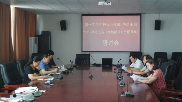 根据学校工作安排,第一工会组于2018年6月13日下午,在三楼会议室以工会小组为单位组织本组教代会代表、中层干部再次研讨“2017年绩效工资(增加部分)分配方案”(草案)。