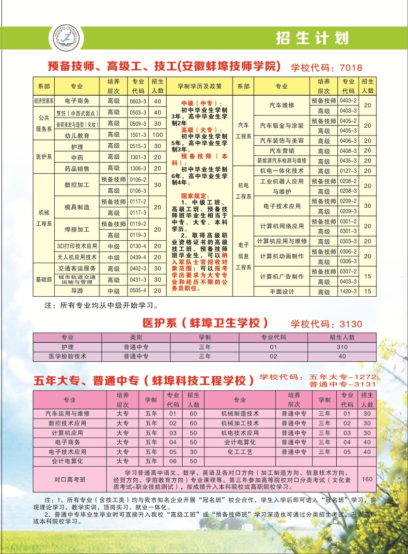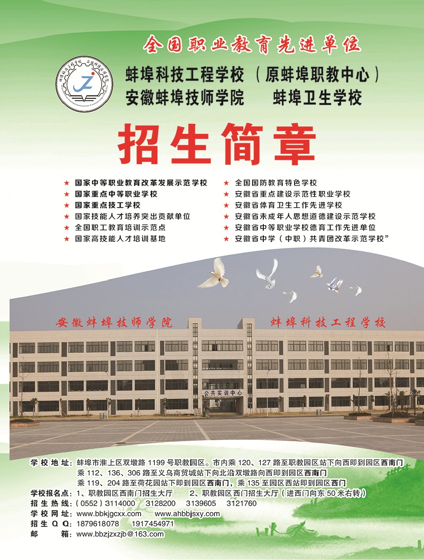 蚌埠科技工程学校 安徽蚌埠技师学院 蚌埠卫生学校 2018秋季招生简章