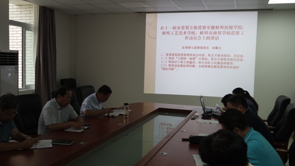 会议首先由一支部书记崔海琼同志宣读了“关于组织学习市委第七巡察组组长朱顺义同志《在十一届市委第五轮巡察安徽蚌埠技师学院、蚌埠工艺美术学校、蚌埠市商贸学校巡察工作动员会上的讲话》的通知(蚌科党委[2018]38号)”、全文学习了市委第七巡察组组长朱顺义《在十一届市委第五轮巡察安徽蚌埠技师学院、蚌埠工艺美术学校、蚌埠市商贸学校巡察工作动员会上的讲话》。其次,崔书记对讲话进行了解读。市委第七巡察组将于7月12日至8月25日对安徽蚌埠技师学院、蚌埠工艺美术学校、蚌埠市商贸学校开展巡察。支部党员同志要一、深刻理解巡察监督的精神实质,切实增强使命感、责任感。(一)要牢牢把握巡察监督的政治定位。(二)要充分彰显巡察监督的制度优势。(三)要有效发挥巡察监督的战略作用。二、紧紧聚焦巡察监督的重点内容,坚定不移再深化、再发展。(一)坚持“六围绕一加强”不放松,坚定不移深化政治巡察。(二)坚持以下看上找偏差,努力办好人民满意的教育。(三)坚持动态辩证看问题,全面准确为被巡察党组织画好“政治肖像”。三、自觉增强接受巡察的政治意识,推动巡察成果真落地、见实效。(一)提高站位,统一思想,正确认识巡察的政治意义(二)密切配合,全力支持,确保巡察工作顺利开展(三)主动担责,推动整改,促进巡察成果落地生根。