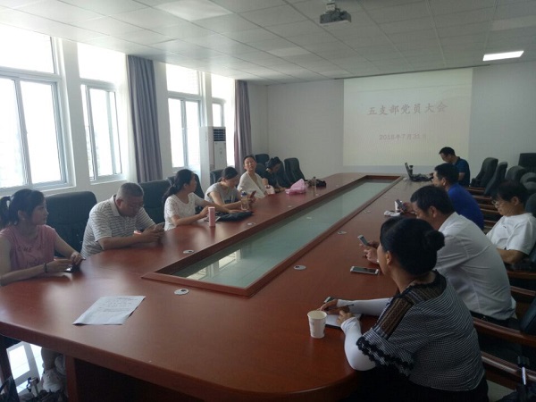 7月31日,五支部在行政楼三楼小会议室召开党员大会。会议由支部书记王玮主持,支部党员参加会议。