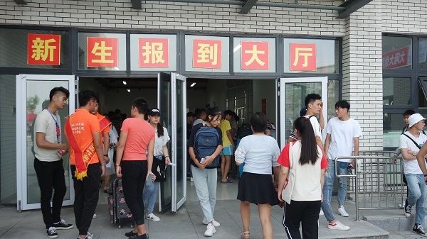 8月22日,我校新生报到第一天,早上7点左右,许多热切向往新学校新生活的莘莘学子们沐浴着金色朝阳就走进校园,在学生志愿者的引导下,到学校招生大厅办理入学手续。