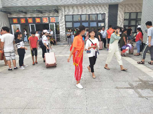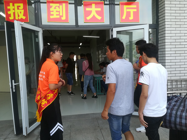 8月22日上午七点,志愿者们就早早来到学校换好衣服,佩戴好工作牌,准备迎接新生的到来,他们分为5个小队分布在学校各个校门口、报名接待点、报道大厅以及宿舍楼门口。大约七点半钟,一些家长以及学生便陆续的来到了学校,迎新志愿者们热情的接待每一位到来的新生,接过他们的行李,并迅速地带他们去注册,报道,缴费,领取生活用品,到宿舍登记。酷热的天气并没有阻止志愿者们的热情,反而更加用心的投入到服务新生的工作中。他们的努力也让来校报道的新生还有家长看在眼里,他们的付出也获得了大家的认同和肯定。