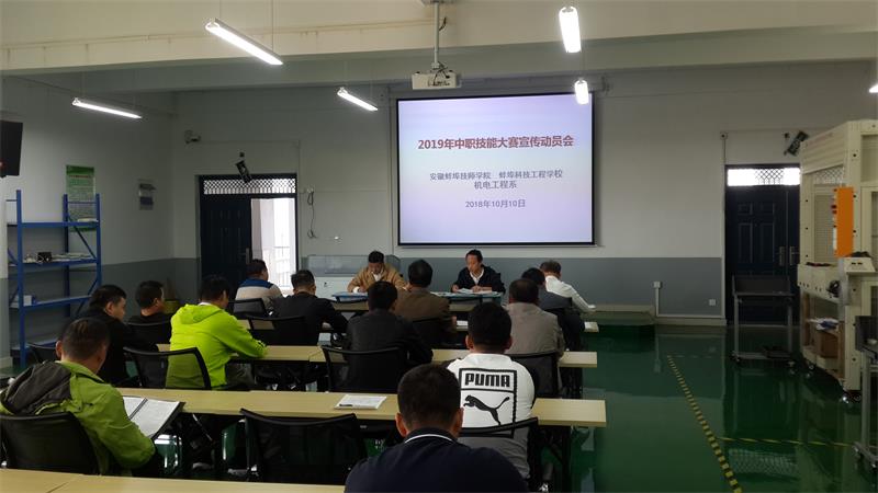 为了更好地迎接2019年中职技能大赛,做好赛前准备工作,2018年10月10日下午3:45分,机电工程系在学校实训西楼201室召开了由系主任焦其彬主持,全体教师参加的赛前宣传动员会。
