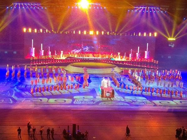 本次省运会开幕式我校学生承担的表演部分为第四小节《禹会诸侯》,是整个文艺表演的第一篇章。学生们在奥体中心的演出现场,迈着整齐划一的步伐组成方阵到达指定区域,按照要求变化队形,为大禹召见诸侯的仪式烘托出磅礴的气势,也进一步升华整场开幕式的气氛。