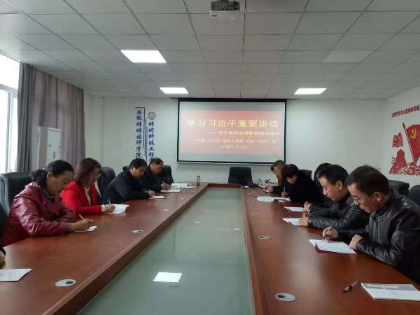 2018年11月28日下午,一支部组织本支部办公室、组织人事处、总务处(财务处)党员学习习近平关于加快发展职业教育的重要讲话。