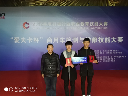 2018年全国机械行业职业教育技能大赛第二届“爱夫卡杯”商用车检测与维修技能大赛于11月26日在河南省郑州市河南交通职业技术学院落下帷幕,参加本次赛项角逐的高职组、中职组代表队近40支,合计100多位选手同台比拼。我校机电工程系选派的两名学生选手张凤祥、刘天赐在指导教师周志宏带领下克服困难、积极训练、精心准备、沉着应考,最终获得大赛三等奖的优异成绩。