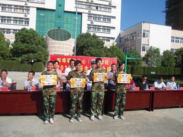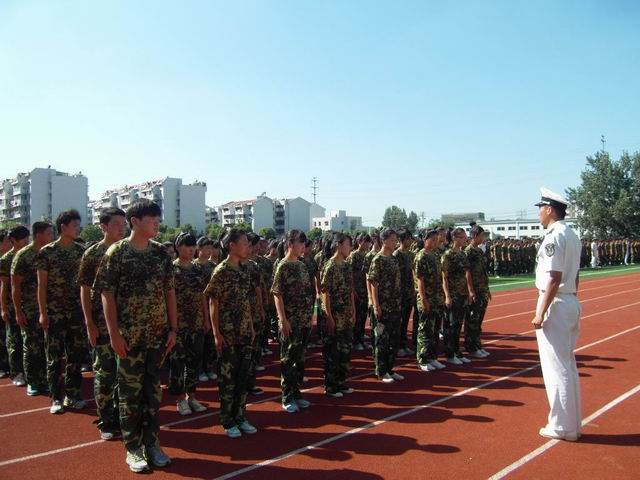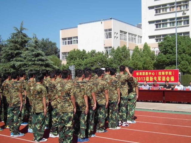 学校成立了以陈元高校长为组长的军训领导小组,邀请海军蚌埠士官学校二大队教官到校执教,从 8月27日开始,对2013级新生进行了为期一周的严格训练。训练场上,同学们遵守纪律,听从指挥,团结友爱,以顽强的意志,经受住了军训对身心的双重考验,表现出顽强的作风和坚强的毅力,涌现出了一大批训练刻苦、严守纪律的先进典型。