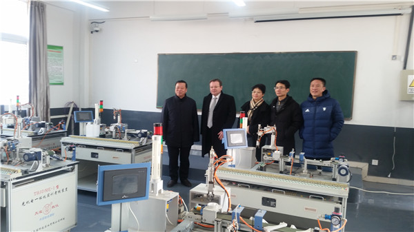 鲍尔教授介绍了德国安克礼职业培训及公司情况。安克礼公司拥有现代化的职业培训设施,在工程机械、机电、生产流程工艺三个专业开展职业培训,目前正积极拓展国际合作,将“双元制”职业教育推广到中国,已在深圳、上海建立了实训基地。鲍尔教授表示,此次公司将双元制模式推广到蚌埠,以期辐射安徽,相信合作一定会获得成功。