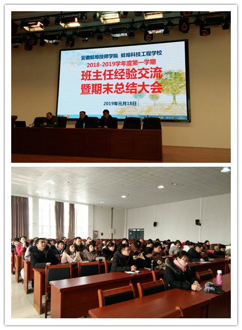2019年1月18日上午,在紧张忙碌的期末工作之余,全体班主任们伴着柔美的音乐来到学校报告厅,参加了由学生处组织召开的2018-2019学年度第一学期班主任经验交流暨学期总结大会。校分管德育的陈劲松副校长、学生处郭仁龙处长参加了会议,会议由徐何刚副处长主持。