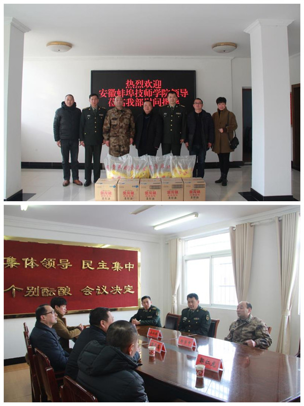 部队领导感谢蚌埠技师学院一直以来对部队建设的关心支持,表示积极支持学校建设和发展,加强联系和往来,打造共建平台,在国防教育、征兵、文体活动等方面办实事,支持学校发展。