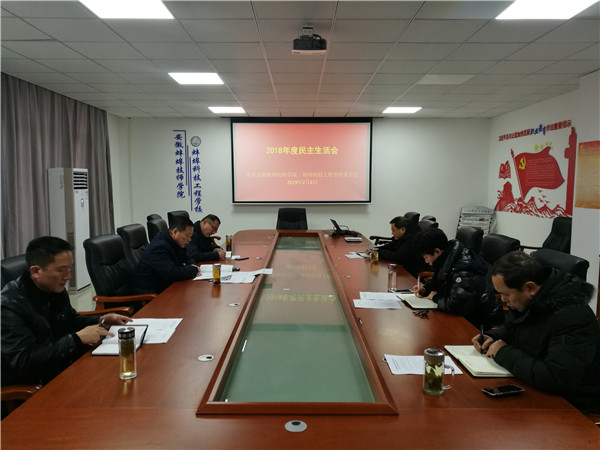 2月2日上午,蚌埠技师学院(蚌埠科技工程学校)党委召开2018年度民主生活会,党委副书记、校长陈元高同志主持会议,党委委员、副校长宋晓宾、陈劲松同志,党委委员、校纪委书记包太平同志参会。校办公室、组织人事处负责同志列席会议。