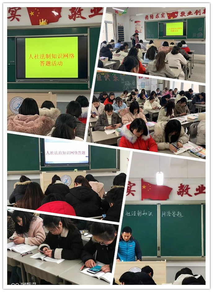 各班级利用班会课让同学们手机微信进入“全国人力资源和社会保障法治知识竞赛”页面参与答题。