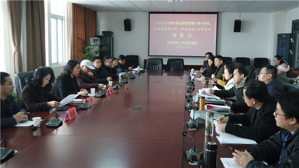 3月8日下午3:00,2019年安徽省职业院校技能大赛中职组蚌埠赛区蚌埠科技工程学校赛点“职业英语服务类”、“职业英语工科类”和“电气安装与维修”、“数控车床装调与维修”、“电子电路装调与应用”五个赛项领队会议、在学校行政会议室和多功能报告厅同时进行。省教育厅大赛监督组组长、五个赛项总裁判长以及各参赛队领队参会。教务处长史毓勇主持会议。