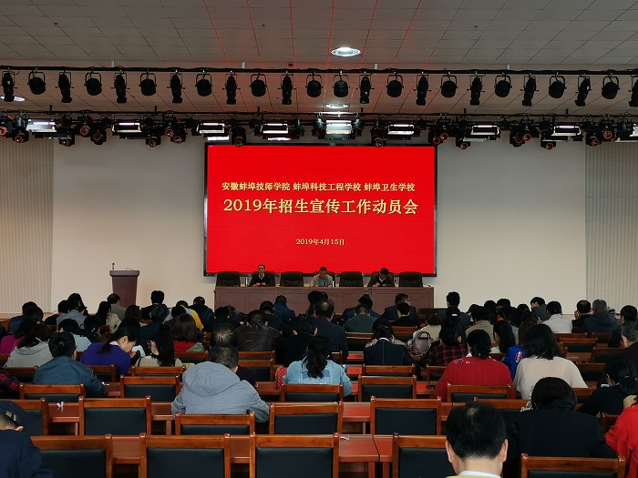动员会由卢嘉瓅副校长主持,校长陈元高做动员讲话,他要求全校教职工做好四项工作:一要把思想统一到招生工作是关系到学校发展的重要工作上来,学校各部门,各系部一定要结合本部门、本系部的实际工作,积极配合招生就业办做好本部门,本系部的招生工作,每位教职工都要熟悉和了解系部的专业内涵,熟悉我校的招生方式和流程,充分掌握我校的各项招生政策。凝心聚力,努力做好今年的招生工作;二是要加强招生队伍建设,鼓励能力强、负责任、有担当的教职工加入到招生宣传队伍中,参与到学校的招生工作中来。三是要完善招生工作机制,抓好任务落实,细致周到地做好招生宣传的各方面工作。要重视媒体宣传工作,重视招生宣传人员的培训工作,重视在蚌埠周边地区开展招生宣传工作,重视暑假中学生及家长报名咨询的接待工作。四是要进一步完善招生奖励机制,提高招生工作效率。陈劲松副校长就2019年的招生宣传工作做了具体部署和要求。(招就办帅恒松、王帅帅供稿)